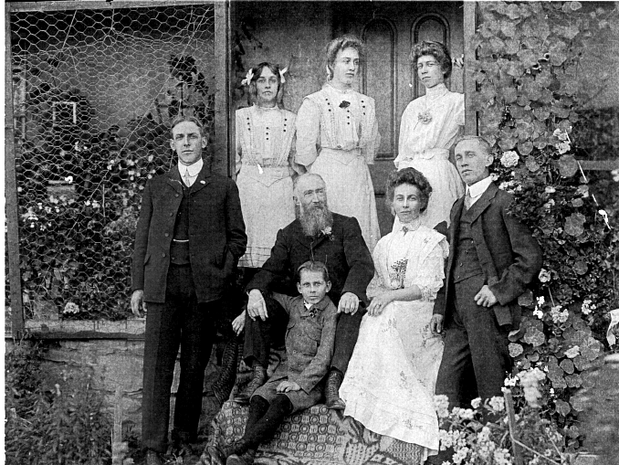 Andrew Hewat (1839-1909) c 1908 with family in South Africa. From back:
