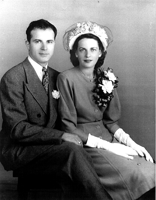 Hazel Hewat Bower and August Chiary's marriage 1946 USA. These are Dianne Kelly's parents.